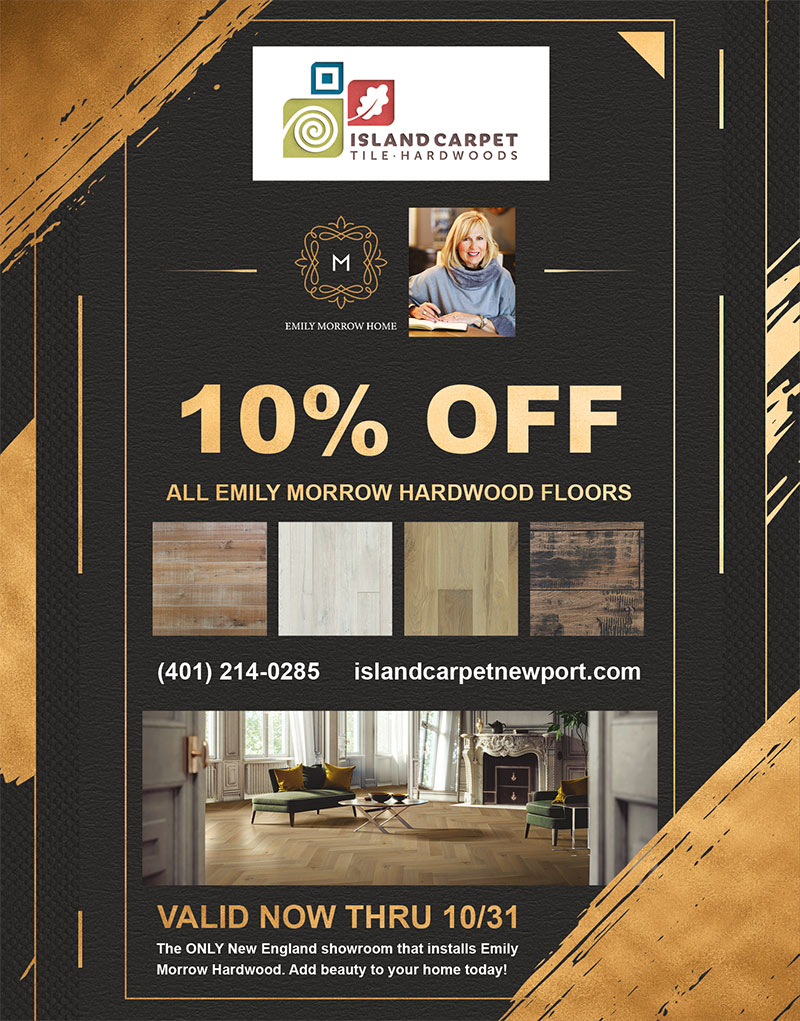 Now through October 31st, shop Island Carpet's best sales of the year—all at once! Whether you're looking for the beauty of Emily Morrow hardwood, the durability of Scratchmaster LVP, the customization of our Tailor'd rugs, or the elegance of Daltile, there's something for everyone. Get the custom floor you want—now at reduced prices.